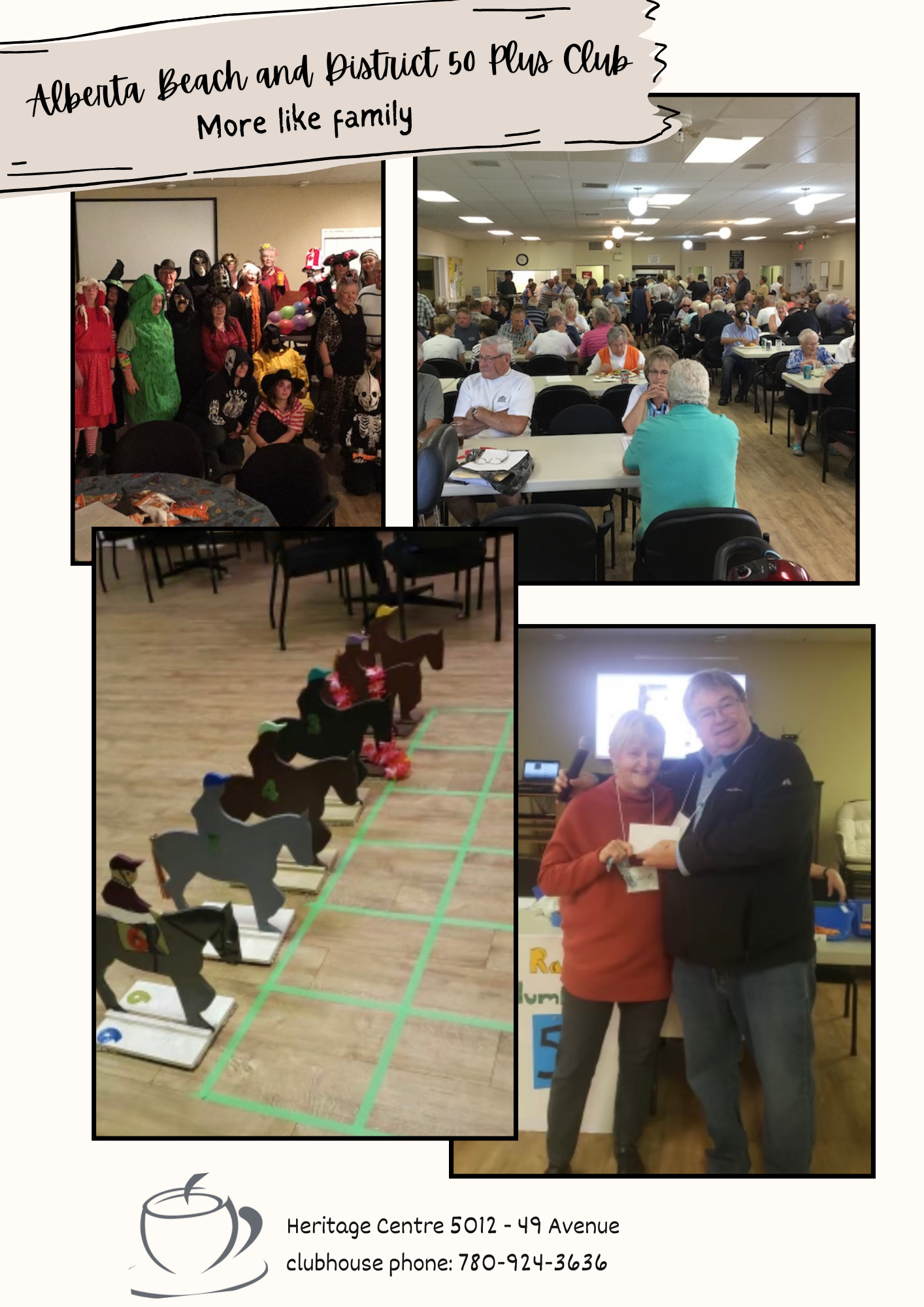 The majority of the programs are offered in our club house: Alberta Beach Heritage Centre (5012 – 49 Avenue, next to the Cultural Village behind the Alberta Beach Hotel) which is a great place for participating in an assortment of activities and leagues.